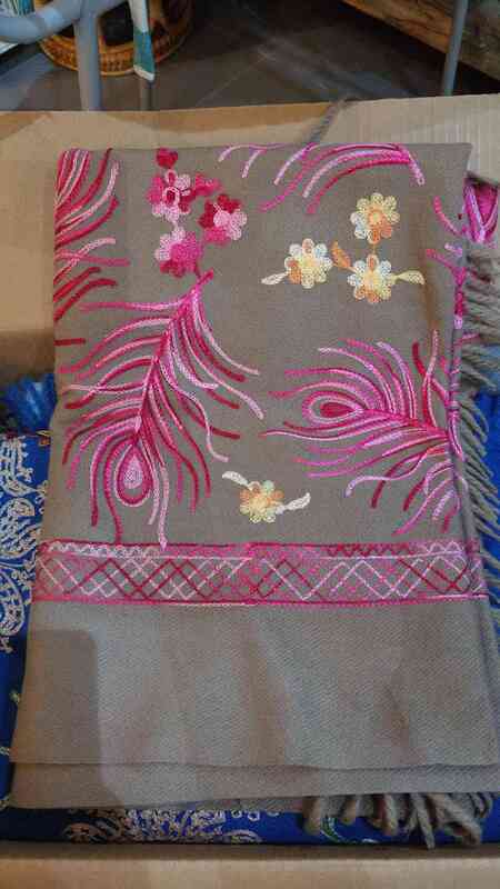 Shawl Cashmere Taupe Peacock