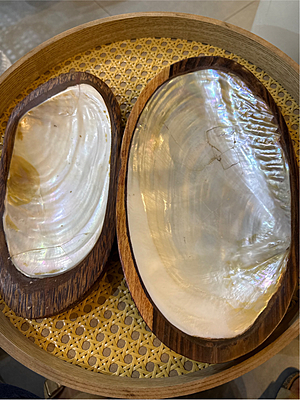 Hand-carved wooden plate in shell shape