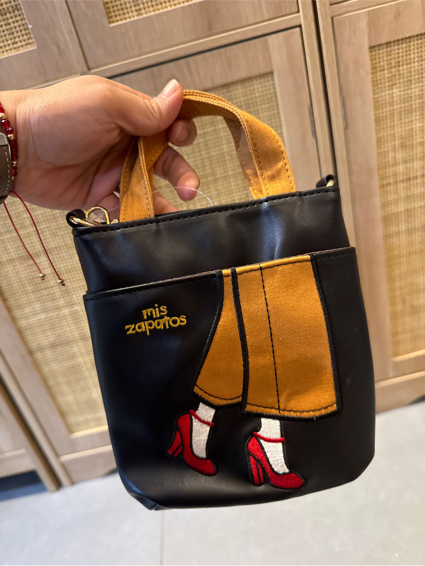 Premium black fabric with Mis Zapatos motif