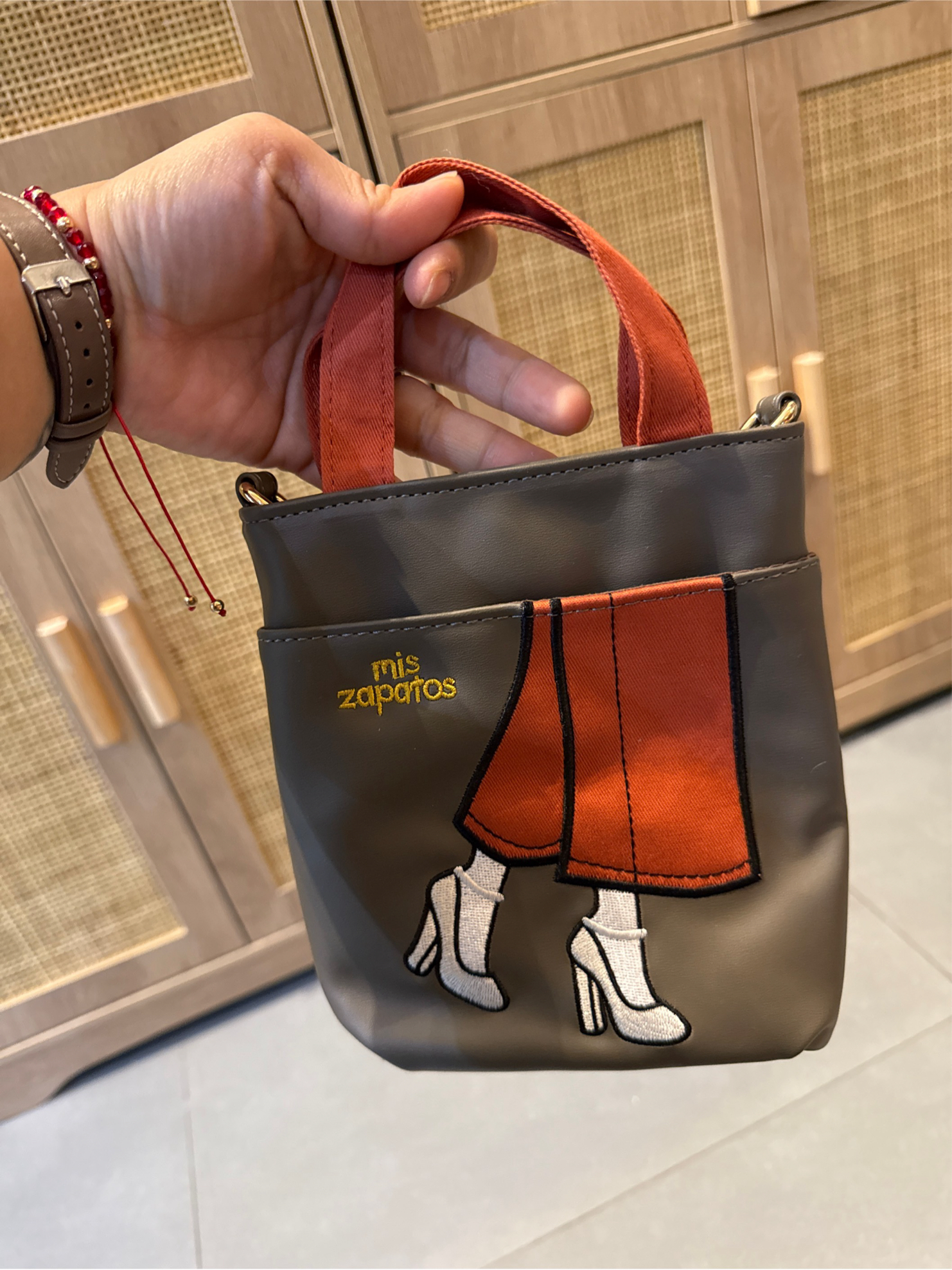 Grey fabric with iconic Mis Zapatos motif