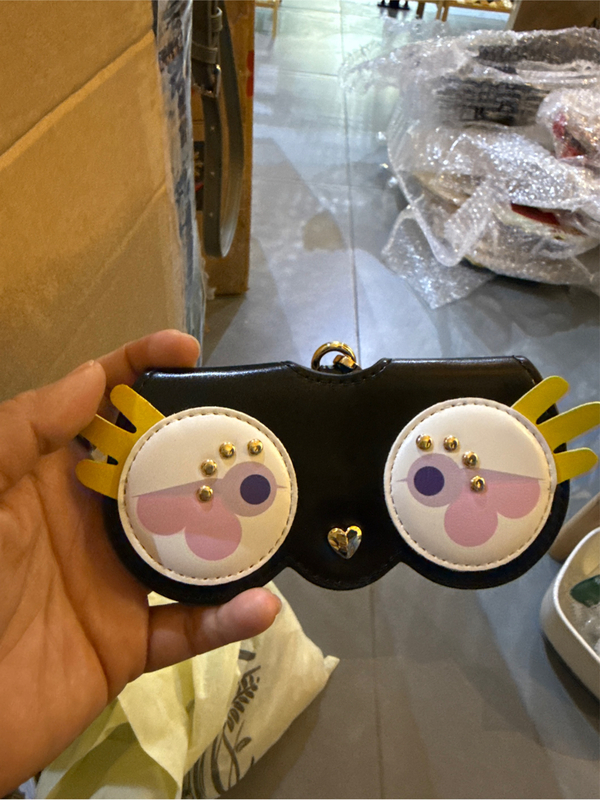 A sleek black leather case adorned with a charming lovebird motif—perfect for keeping your eyewear safe in style.